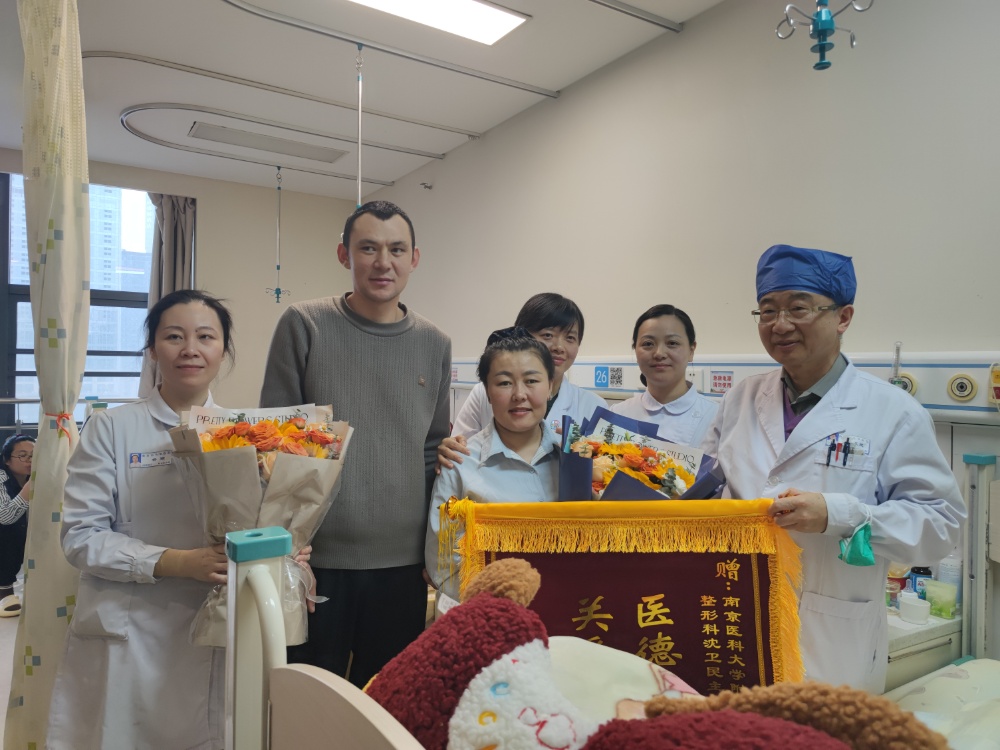 一支由烧伤整形科、麻醉科医生组成的医疗团队,克服路途遥远、病情危重、流程复杂等考验,在跨越4800多公里、历经38小时的急速转运后,将孩子从喀什平安接至南京。如今,经过精准手术和精心护理,孩子已从ICU转入普通病房,顺利自主进食。